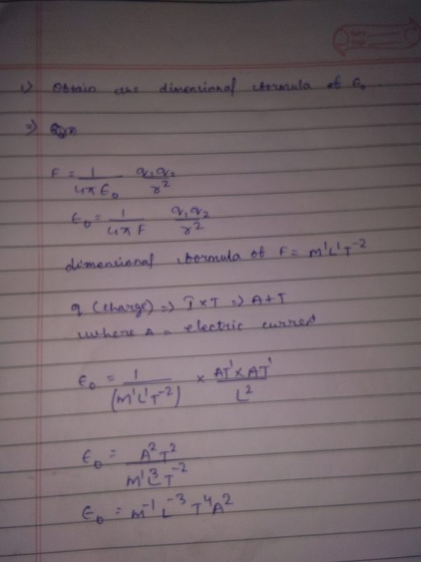Dimensional Formula Of Impulse Of Force : what is the dimensional formula of epsilon not - Physics : In a collision, an object experiences a force for a specific .